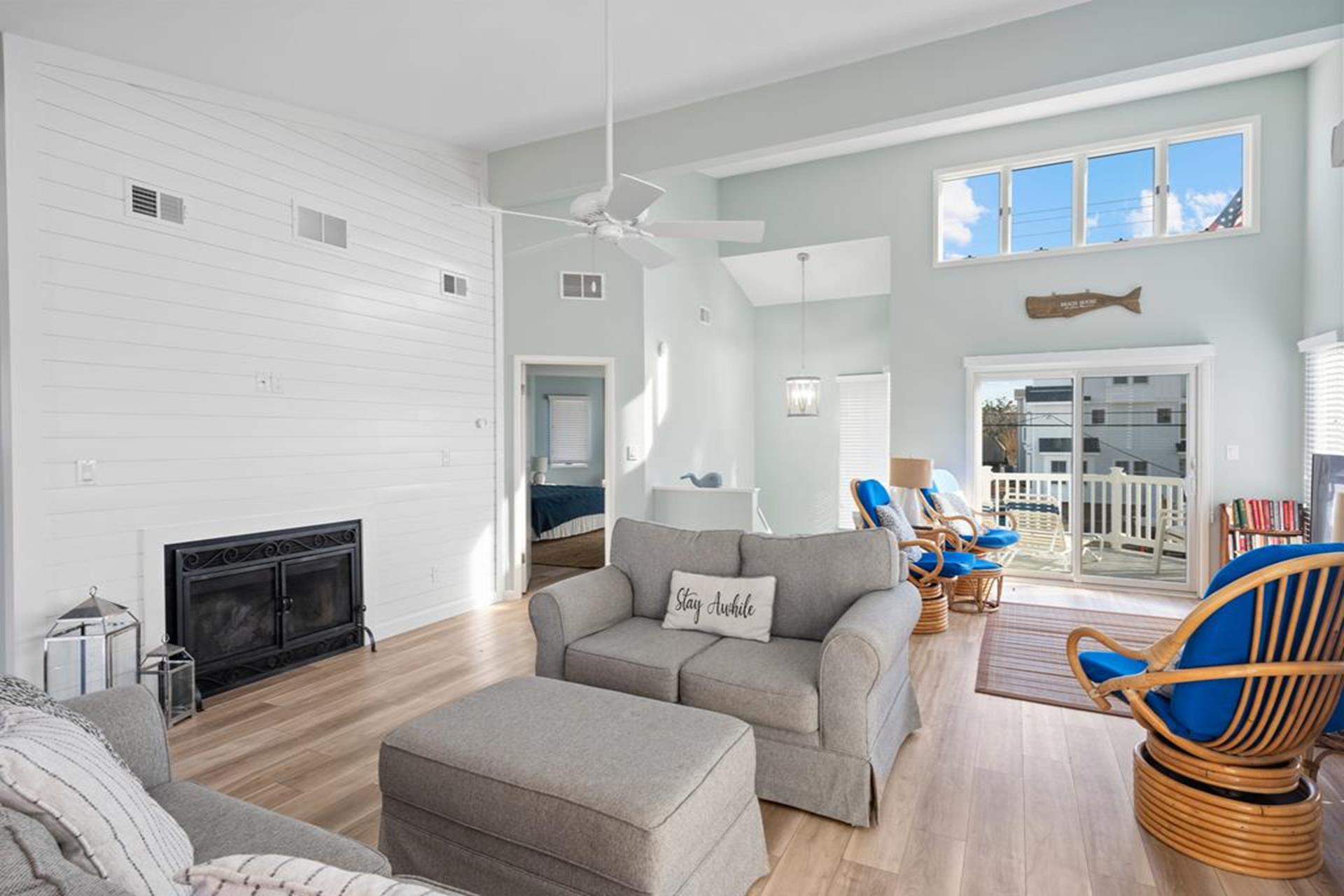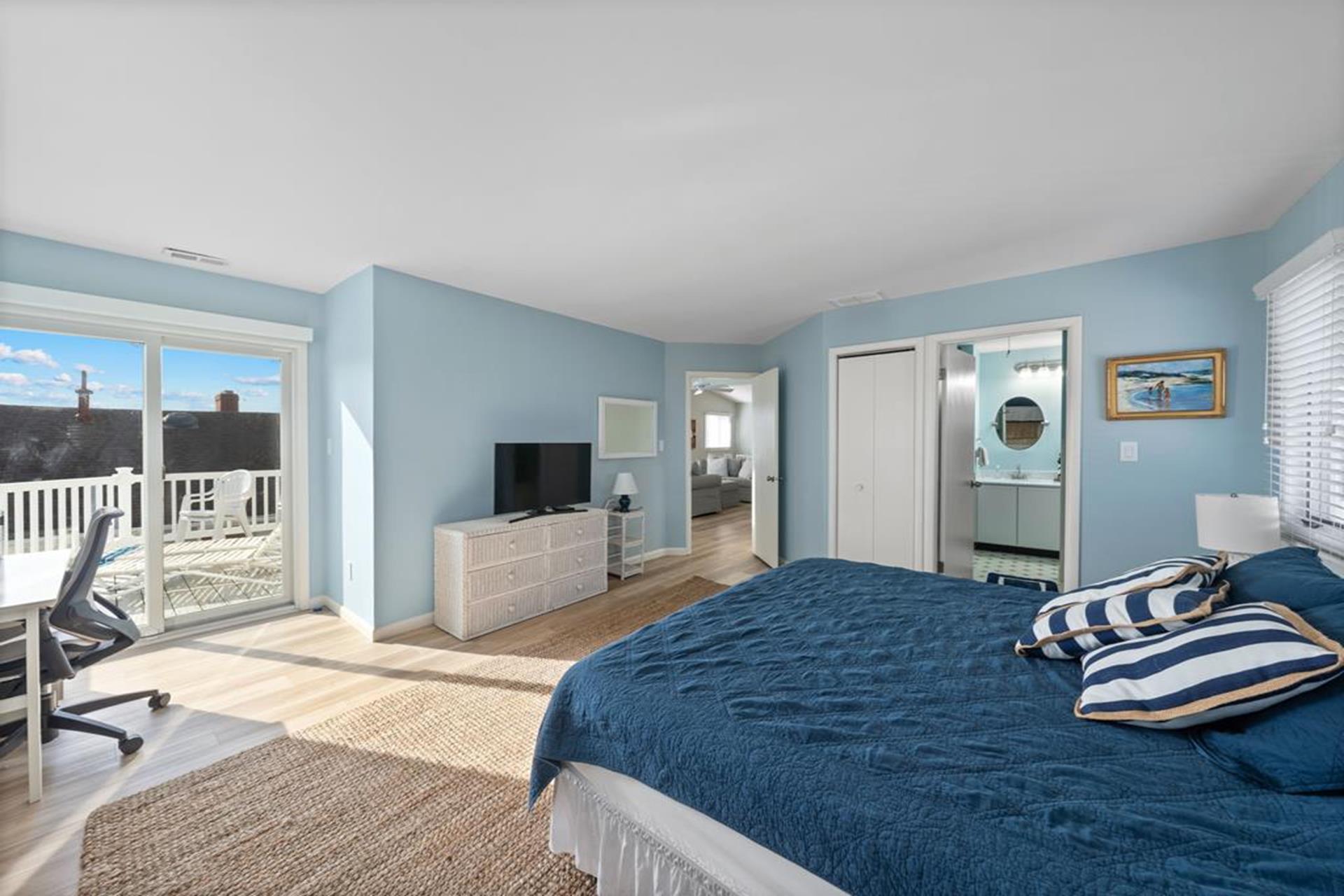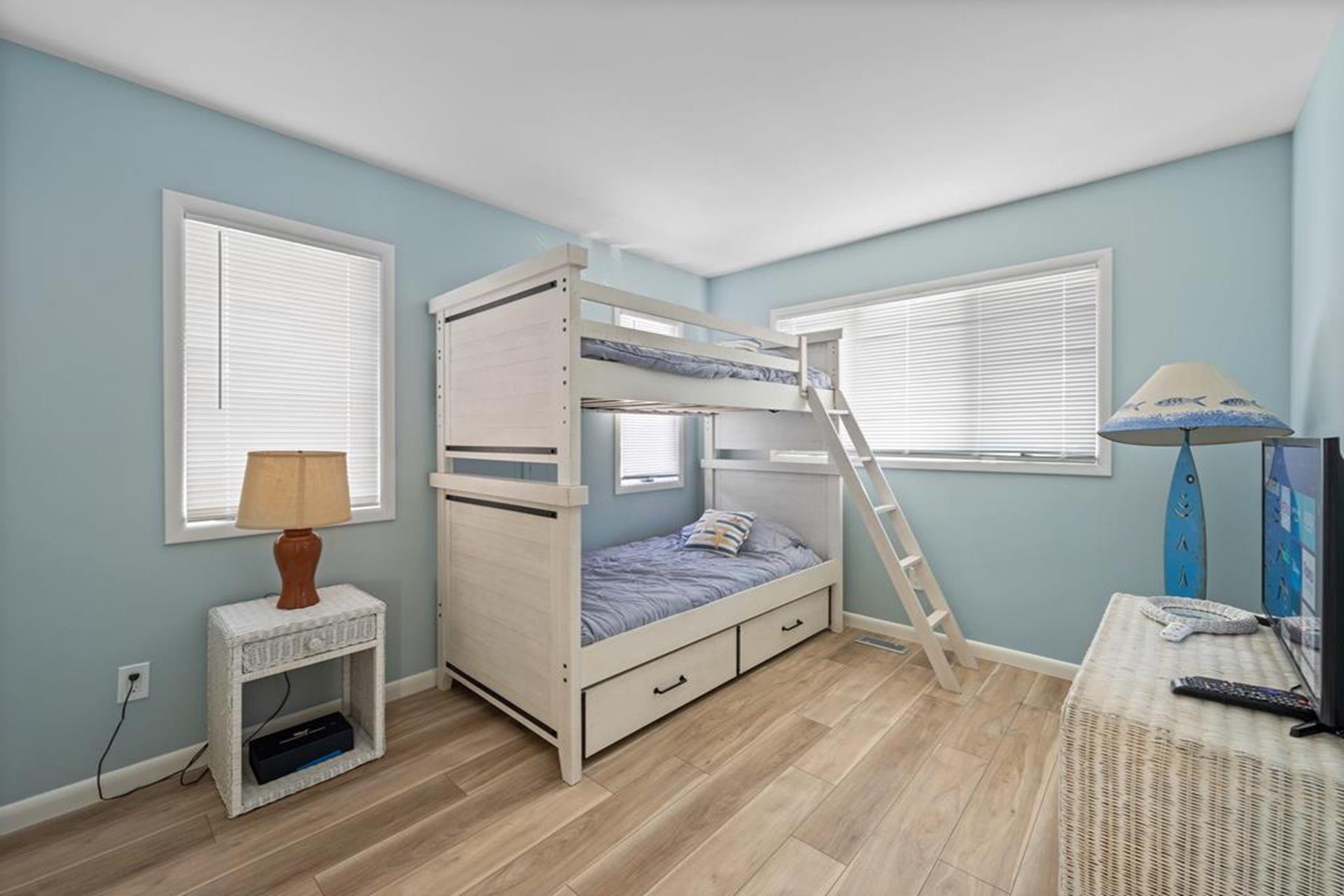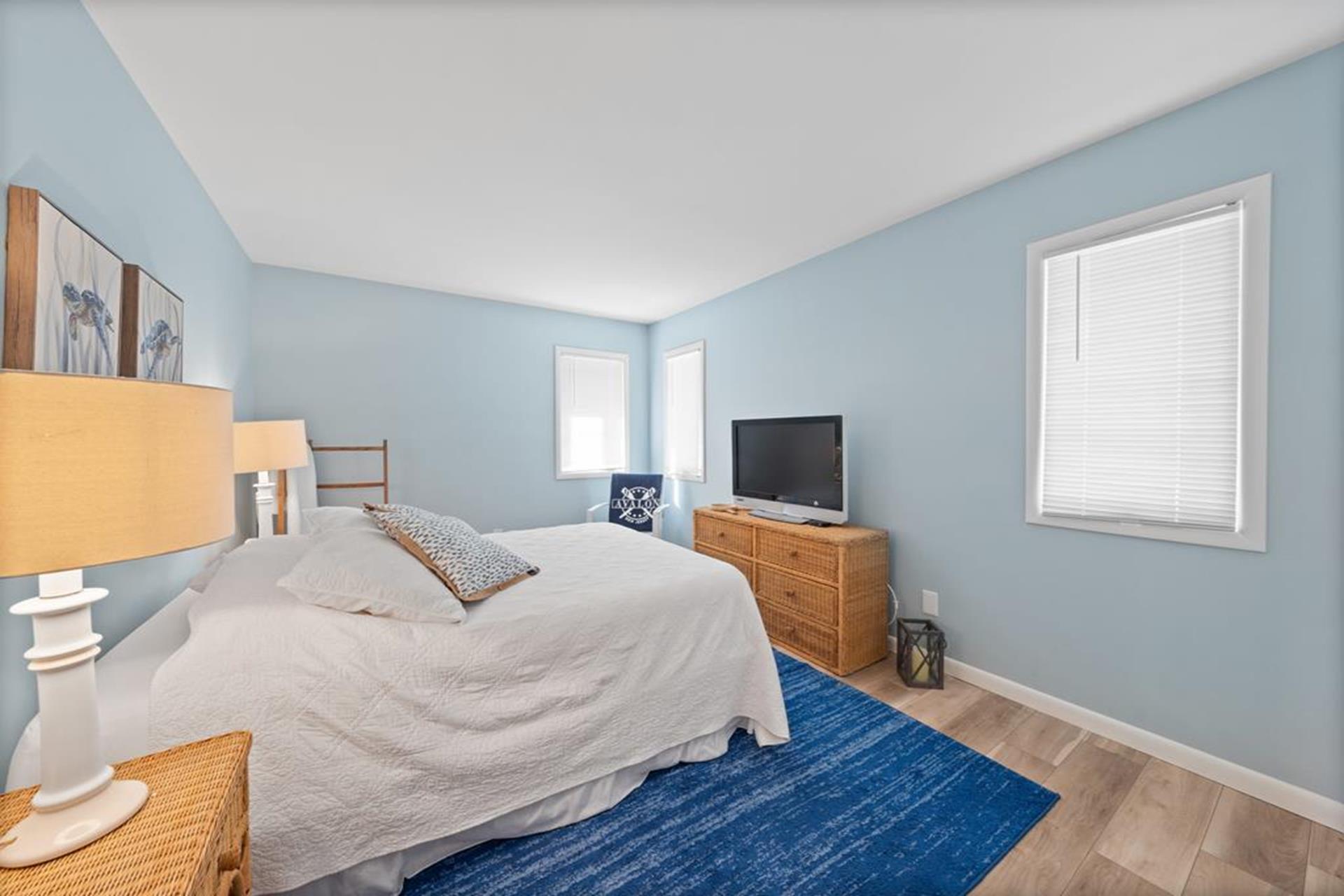 | This home is a two story, 5 bedrooms, 2.5 bath single family home in the quiet north end location. The first floor has four bedrooms: 1 room with twin beds, 1 room with a queen bed, 1 bedroom with 2 full size beds. and 1 room with twin bunk beds and a twin trundle bed. There is 1 full bath on this level. The second floor has a beautiful open floor plan with a living/dining area, kitchen, front deck, back deck, and one-half bath plus a master suite with a king bed, balcony deck and private full bath. 2 short blocks to the beach, a short bike ride to the recreation center, and four blocks to restaurants and shopping in Avalon s business district! Enjoy your morning cup of coffee on the front porch as the morning sun rises overhead. Time for a BBQ & afternoon fun after the beach? The sun filled spacious yard and back patio is an ideal spot to lounge in the warm sun and ocean breezes. Enjoy time with family and friends inside or outside w/corn hole, bocce ball, and more! A perfect kid friendly home for your next vacation, convenient to everything!!! Park your car and don t move it until it is time to go home. |