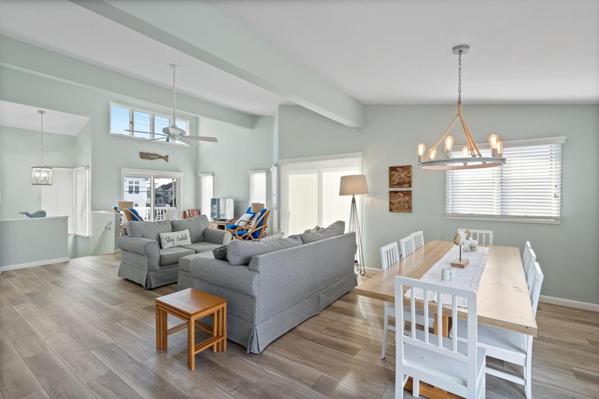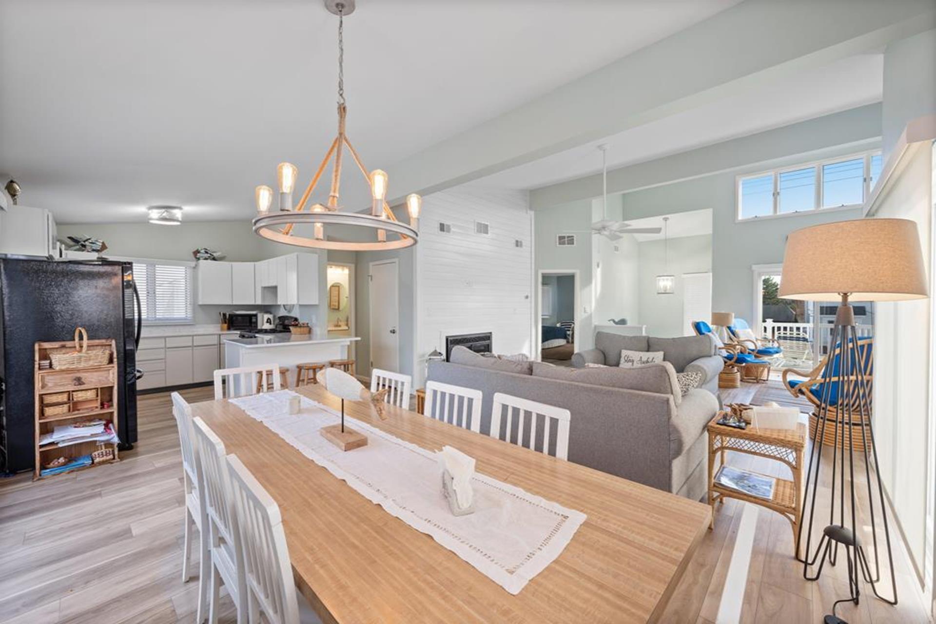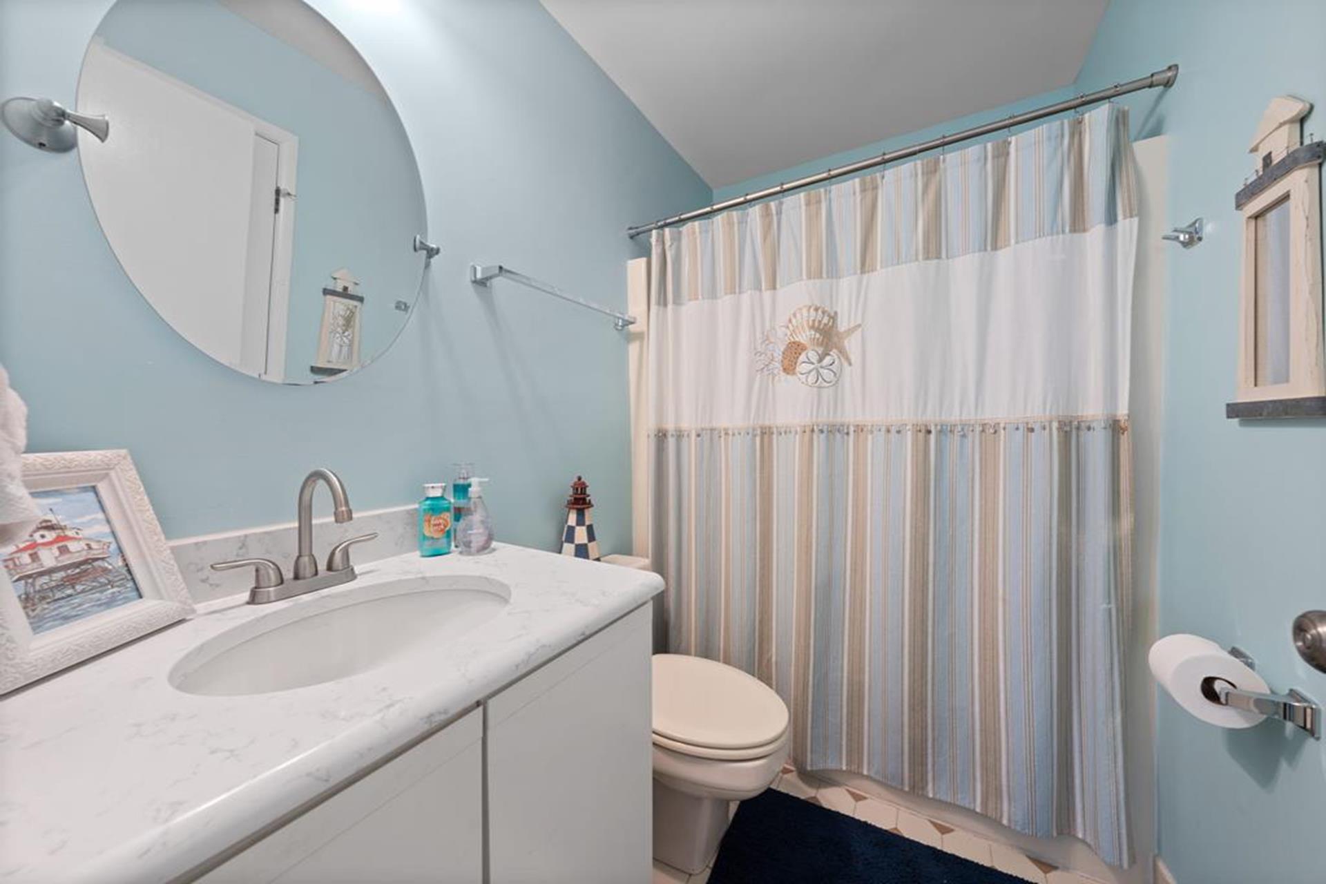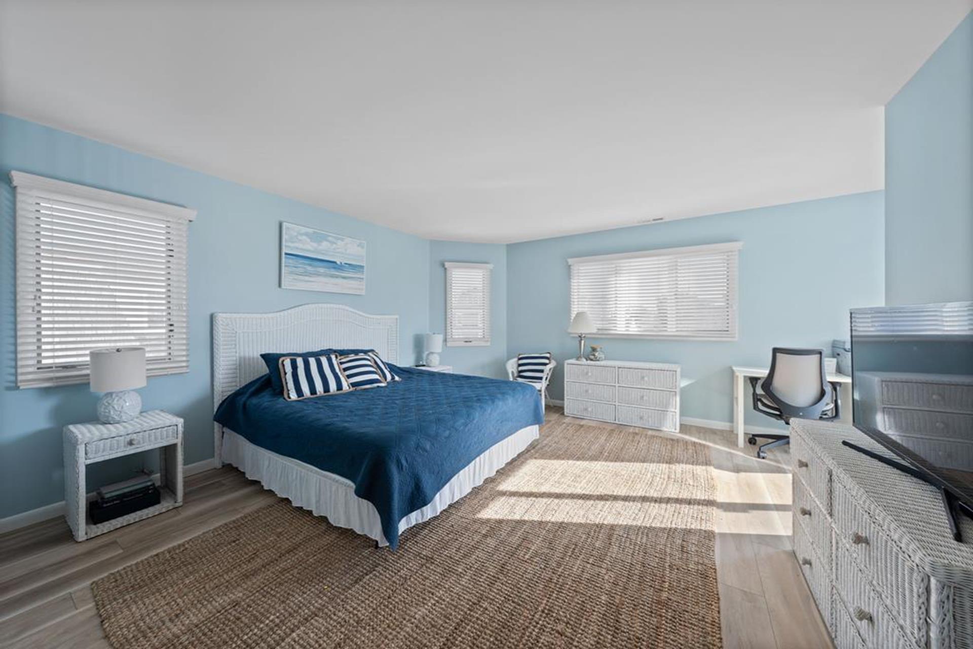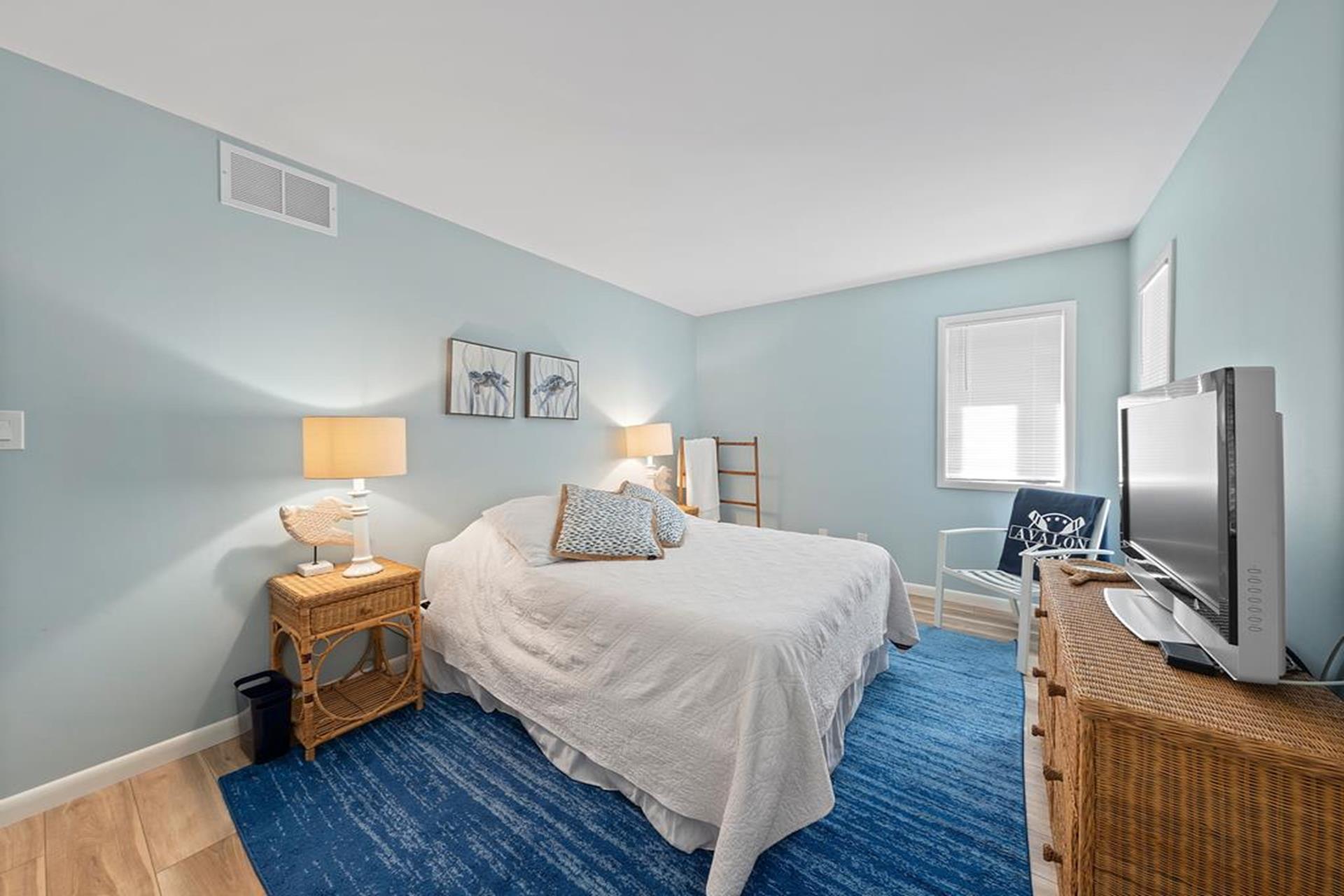 | This home is a two story, 5 bedrooms, 2.5 bath single family home in the quiet north end location. The first floor has four bedrooms: 1 room with twin beds, 1 room with a queen bed, 1 bedroom with 2 full size beds. and 1 room with twin bunk beds and a twin trundle bed. There is 1 full bath on this level. The second floor has a beautiful open floor plan with a living/dining area, kitchen, front deck, back deck, and one-half bath plus a master suite with a king bed, balcony deck and private full bath. 2 short blocks to the beach, a short bike ride to the recreation center, and four blocks to restaurants and shopping in Avalon s business district! Enjoy your morning cup of coffee on the front porch as the morning sun rises overhead. Time for a BBQ & afternoon fun after the beach? The sun filled spacious yard and back patio is an ideal spot to lounge in the warm sun and ocean breezes. Enjoy time with family and friends inside or outside w/corn hole, bocce ball, and more! A perfect kid friendly home for your next vacation, convenient to everything!!! Park your car and don t move it until it is time to go home. |