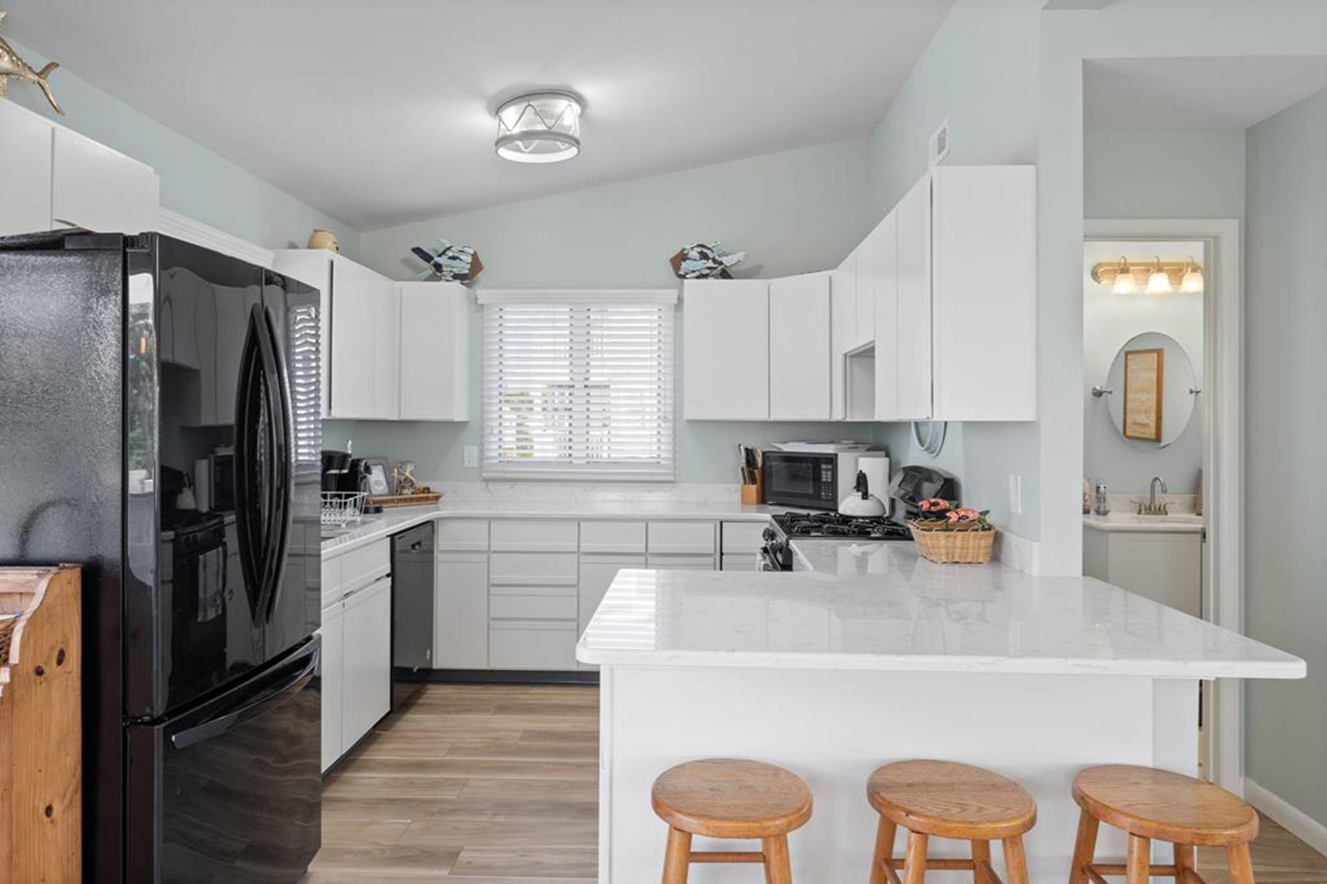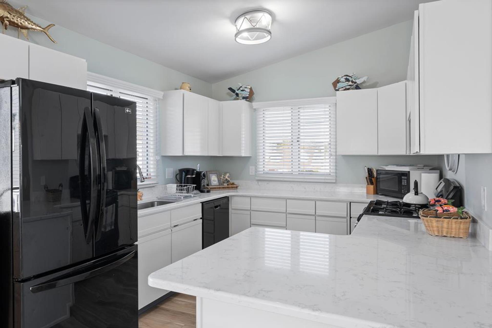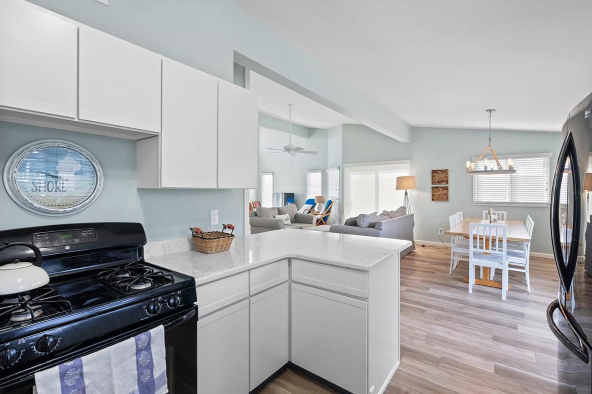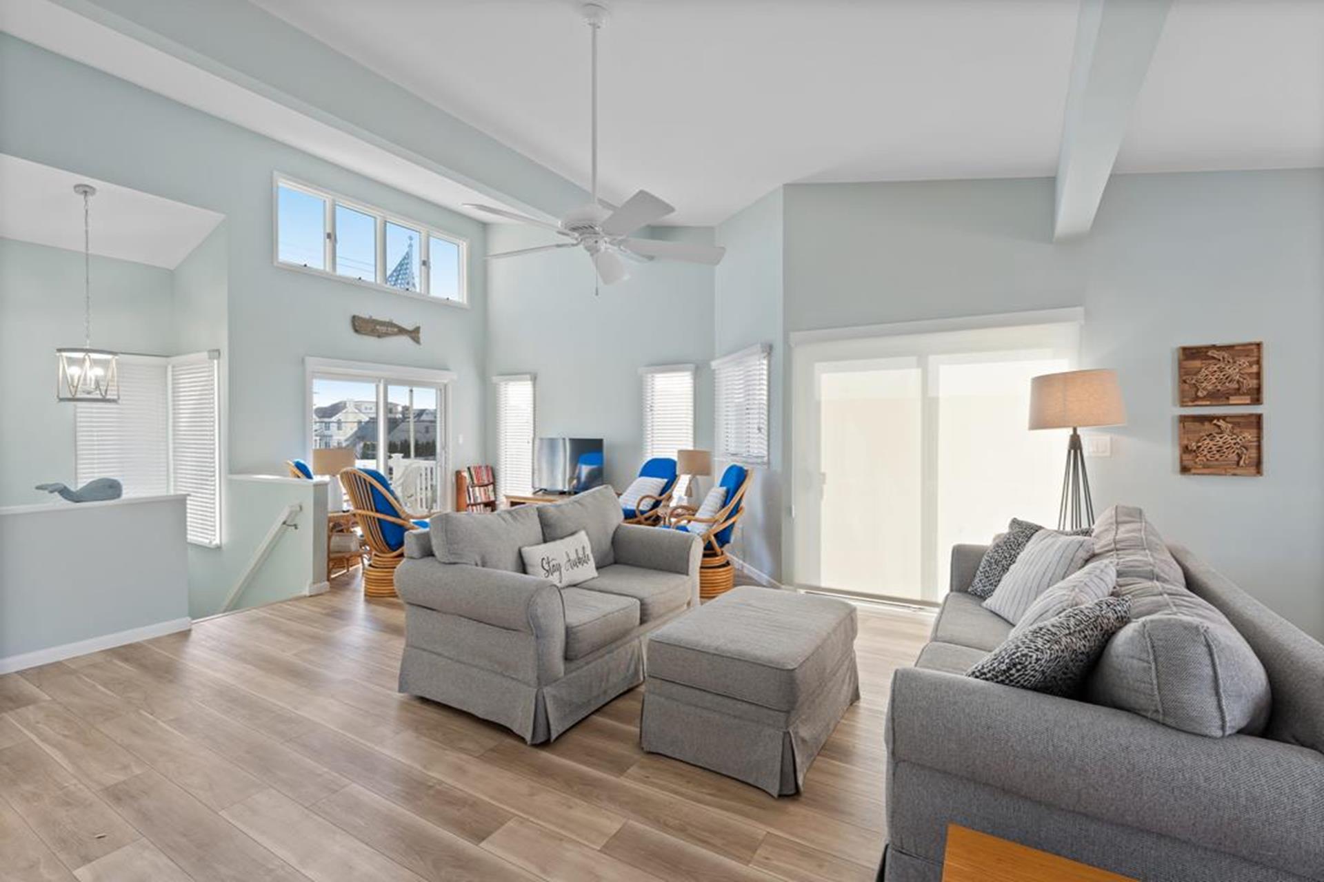 | This home is a two story, 5 bedrooms, 2.5 bath single family home in the quiet north end location. The first floor has four bedrooms: 1 room with twin beds, 1 room with a queen bed, 1 bedroom with 2 full size beds. and 1 room with twin bunk beds and a twin trundle bed. There is 1 full bath on this level. The second floor has a beautiful open floor plan with a living/dining area, kitchen, front deck, back deck, and one-half bath plus a master suite with a king bed, balcony deck and private full bath. 2 short blocks to the beach, a short bike ride to the recreation center, and four blocks to restaurants and shopping in Avalon s business district! Enjoy your morning cup of coffee on the front porch as the morning sun rises overhead. Time for a BBQ & afternoon fun after the beach? The sun filled spacious yard and back patio is an ideal spot to lounge in the warm sun and ocean breezes. Enjoy time with family and friends inside or outside w/corn hole, bocce ball, and more! A perfect kid friendly home for your next vacation, convenient to everything!!! Park your car and don t move it until it is time to go home. |